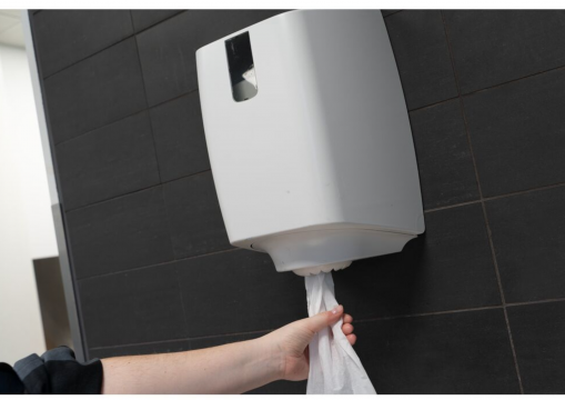 Annostelija on valmistettu 100% kierrätetystä muovista ja on laadultaan vahva sekä käyttöä kestävä. Annostelija on ulkonäöltään yksinkertaisen tyylikäs. Huoltohenkilöstön on helppo seurata kulutusta annostelijan ikkunasta. Annostelijassa on repäisyreunat.