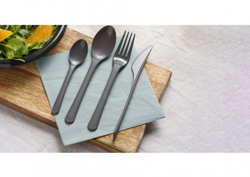 Uudelleenkäytettävät ja astianpesukoneen kestävät aterimet on valmistettu polypropeenista, joka on asianmukaisesti lajiteltuna 100-prosenttisesti kierrätettävää.