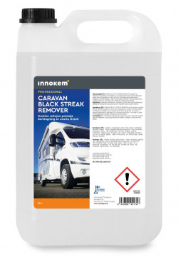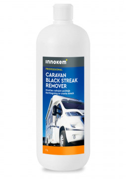 INNOKEM Caravan Black Streak Remover on pesuaine, joka on erityisesti kehitetty poistamaan mustat likaraidat, noen, maantielian ja -pien, levän ja tahrat. Puhdistaa pakoputkenpään ympäriltä noen. Tuotetta voidaan käyttää useimmilla kovilla pinnoilla, mutta se on suunniteltu erityisesti asuntoautoille ja -vaunuille. Tuote on turvallinen maalipinnalle, lasikuidulle, hiilikuidulle, metallille, kumille ja tekstiileille.