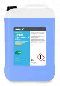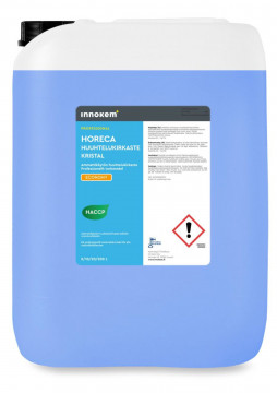 INNOKEM Huuhtelukirkaste Kristal Economy on tarkoitettu koneelliseen astianpesuun. Kuivattaa nopeasti kaikki astiatyypit (lasi, muovi, posliini, teräs). Tuote on erittäin matalavaahtoinen alemmissakin lämpötiloissa. Tuote on yhteensopiva HACCP-järjestelmän kanssa.