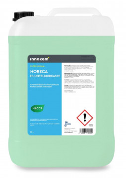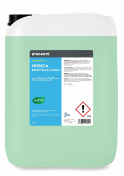 Koneellisen astianpesun huuhtelukirkaste kaikkiin automaattisella huuhteluainepumpulla varustettuihin astianpesukoneisiin. Kuivattaa nopeasti kaikki astiatyypit (lasi, muovi, teräs). Erittäin matalavaahtoinen alemmissakin lämpötiloissa. Tuote on yhteensopiva HACCP-järjestelmän kanssa. Suositellaan käytettäväksi Innokem Konetiskiaineiden kanssa.